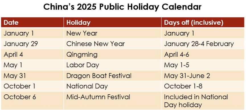 Opportunities to Attract Chinese Tourism! National Holidays Calendar for China 2025 🗓️🎉